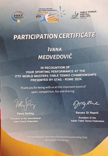 Ivana Medvedović na svjetskom veteranskom prvenstvu u stolnom tenisu